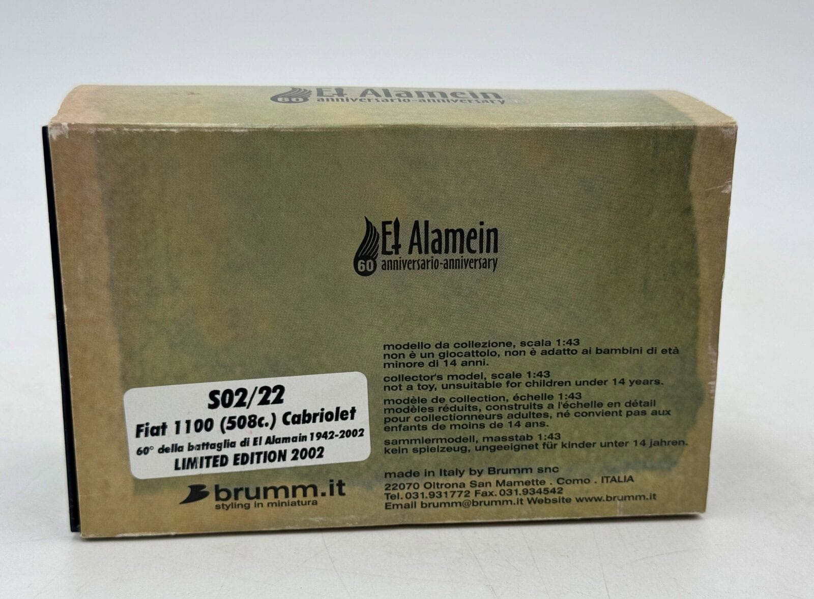 1/43 ” FIAT 1100 – EL ALAMAIN – 1942/2002 ” (S02/22) BRUMM