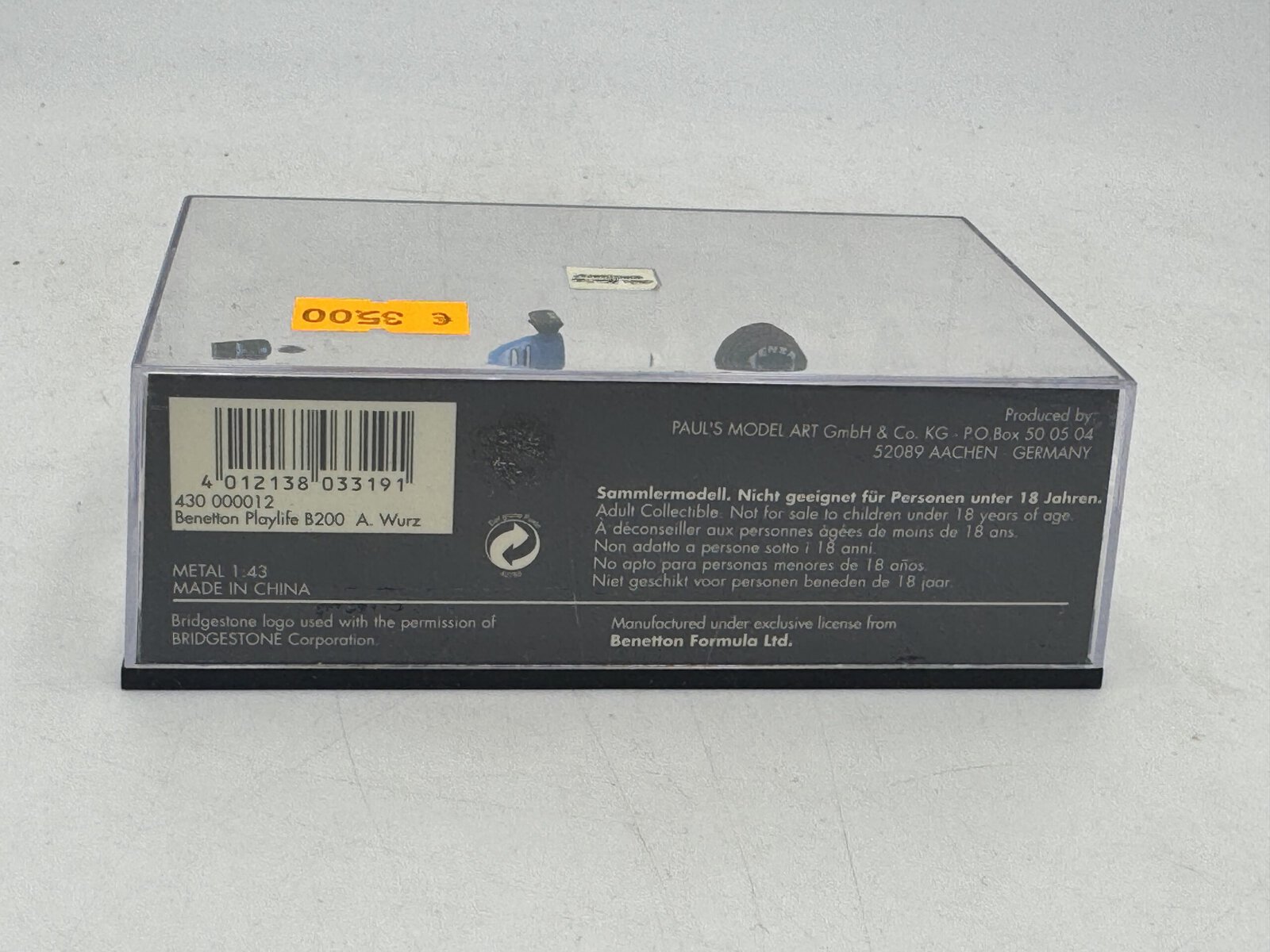 DIE CAST 1/43 ” BENETTON PLAYLIFE B200 A. WURZ ” (430 000012) MINICHAMPS