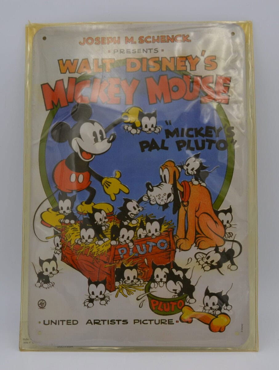 TARGA IN LATTA " JOSEPH M. SCHENCH PRESENTS - WALT DISNEY ' S MIKEY ' S PAL PLUTO " quantità