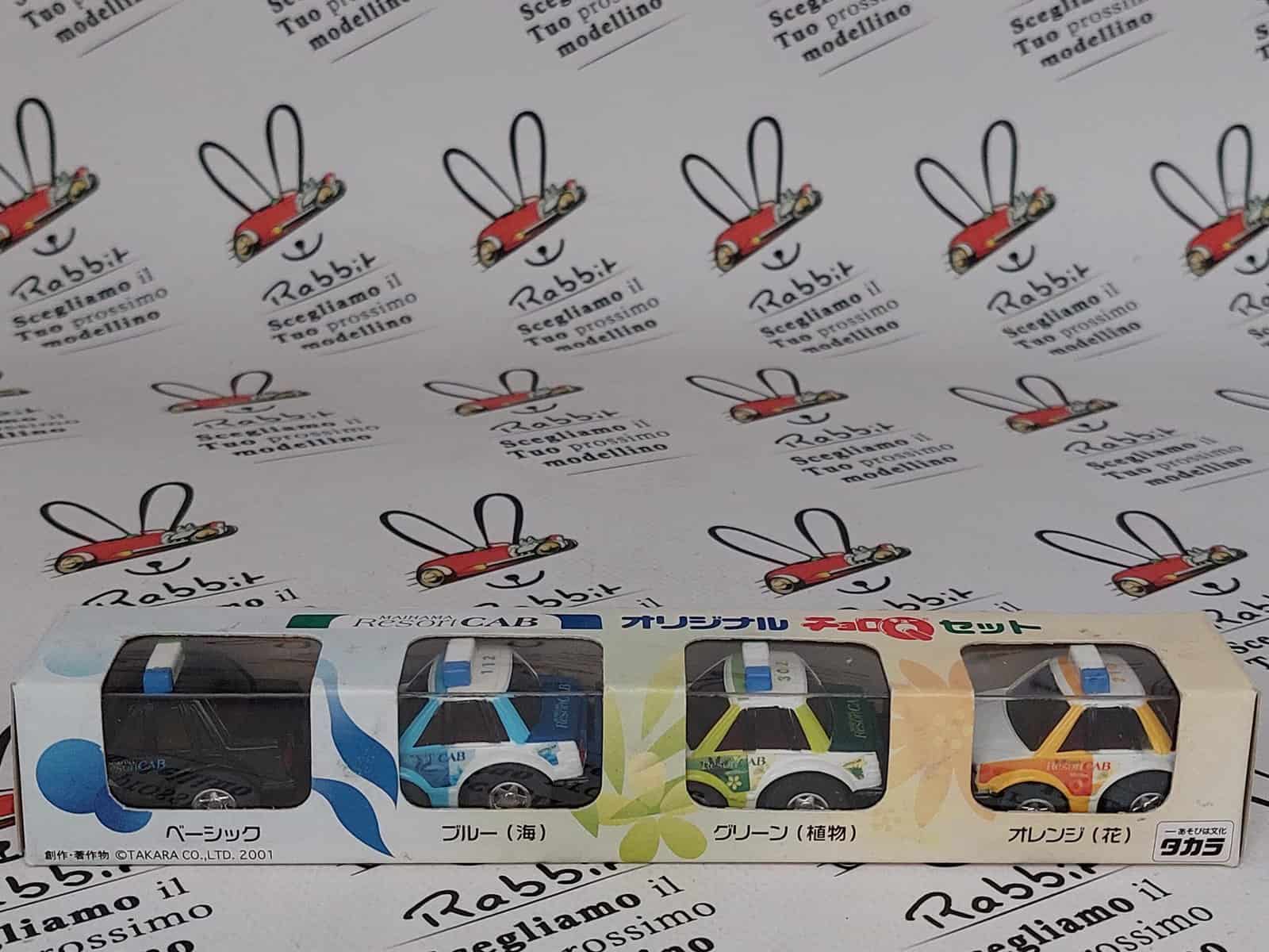 TOMYTEC CHORO Q ” RESORT CAB – DI BASE / MARE BLU / PIANTA VERDE / ARANCIO FIORE ” SET CHOLO ORIGINALE TAKARA TOMY